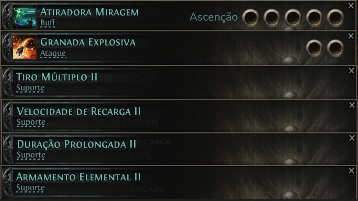 Habilidade da ascensão da Atiradora.. fica mais forte conforme você sobe de nível.. Ao tentar colocar as gemas de suporte nessa habilidade, elas podem não aparecer, caso isso aconteça, selecione a opção “TODAS AS GEMAS”.