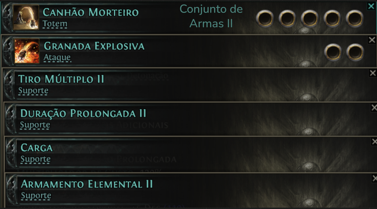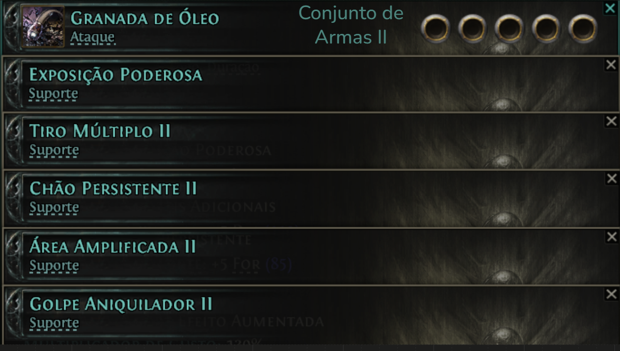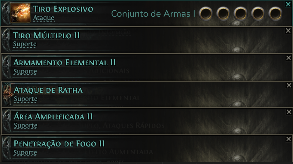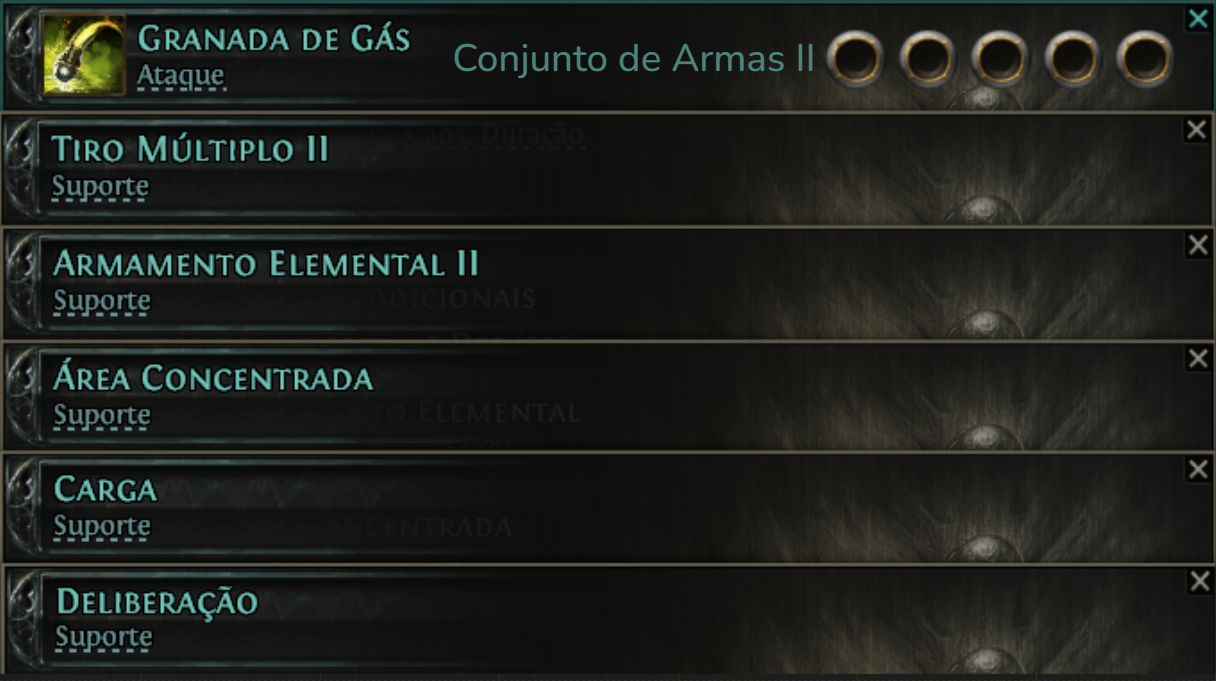 Ao tentar colocar as gemas de suporte nessa habilidade, elas podem não aparecer, caso isso aconteça, selecione a opção “TODAS AS GEMAS”.