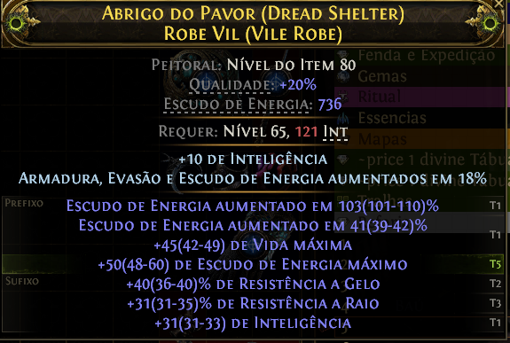 - Pegar uma base mágica com Bastante Escudo de Energia aumentado em #% ou # de escudo de energia máximo (local) junto com #% de resistência.