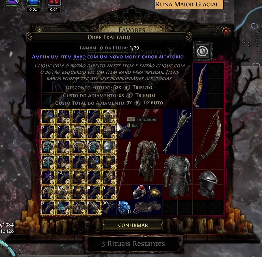 Use essa tábua para conseguir pelo menos de 6 a 8 rolagens extras no seu ritual, aumentando suas chances de adiar o máximo de itens possível. Geralmente, será necessário fazer de 2 a 3 mapas para conseguir adiar e comprar tudo. Mesmo que essa tábua seja cara, ela vale muito a pena pelo resultado que proporciona.